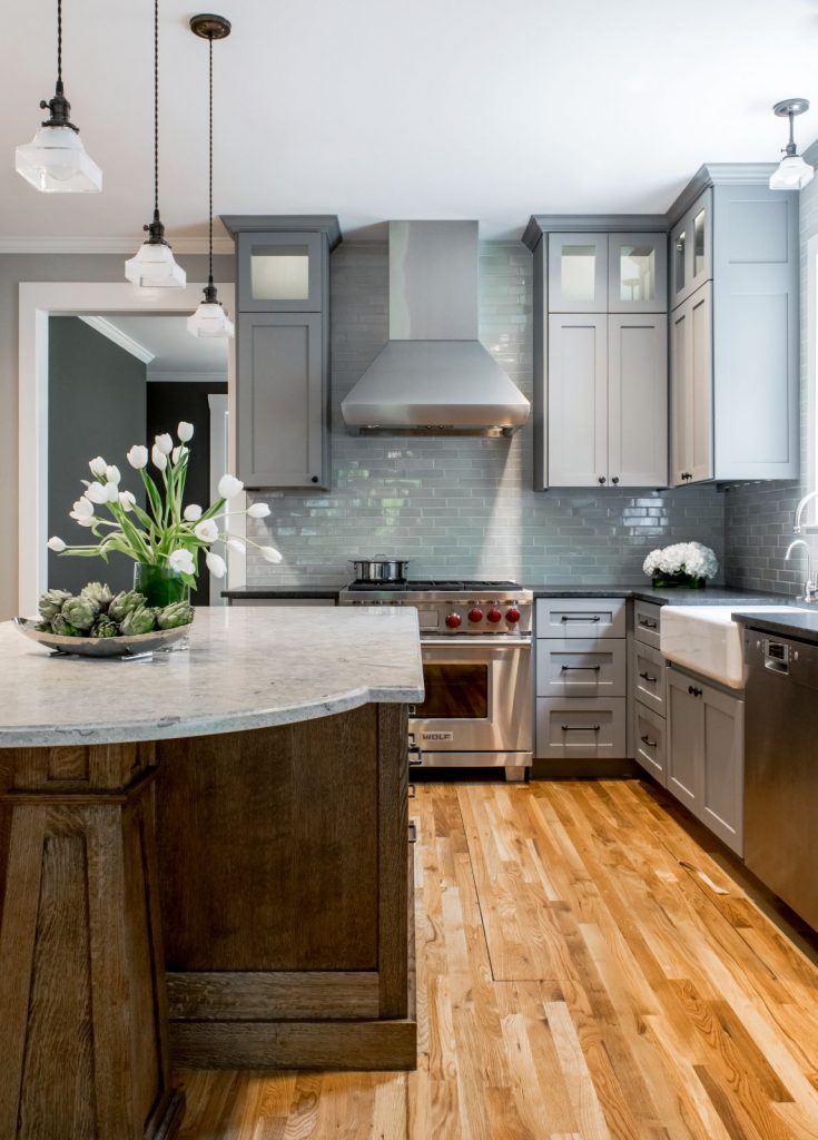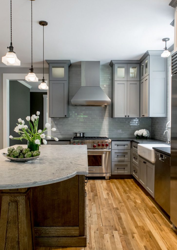 • Jura Gray limestone on the island countertop.