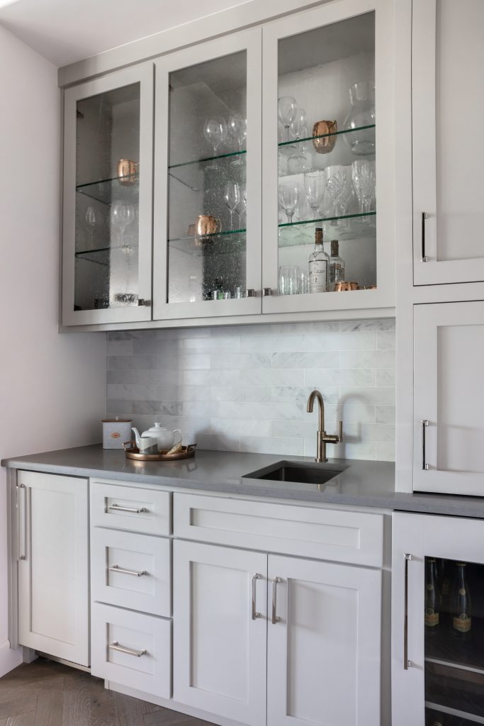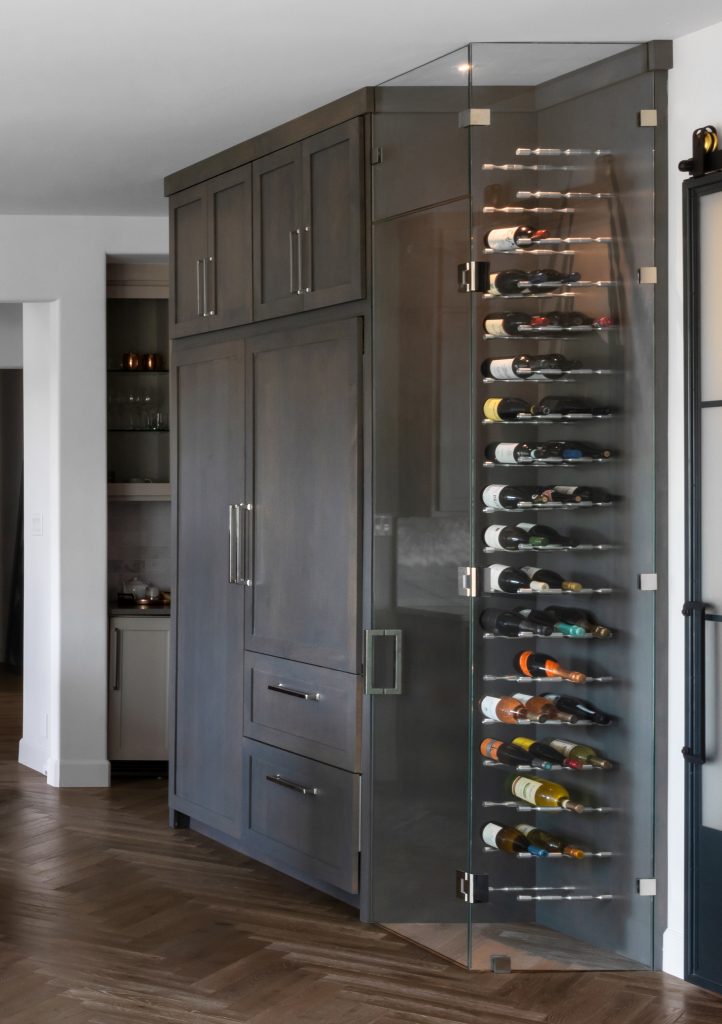 • Created a custom floor-to-ceiling glass wine storage.