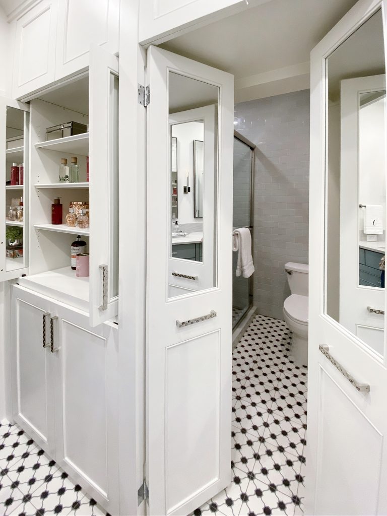 • Removed existing cabinetry and medicine cabinets.