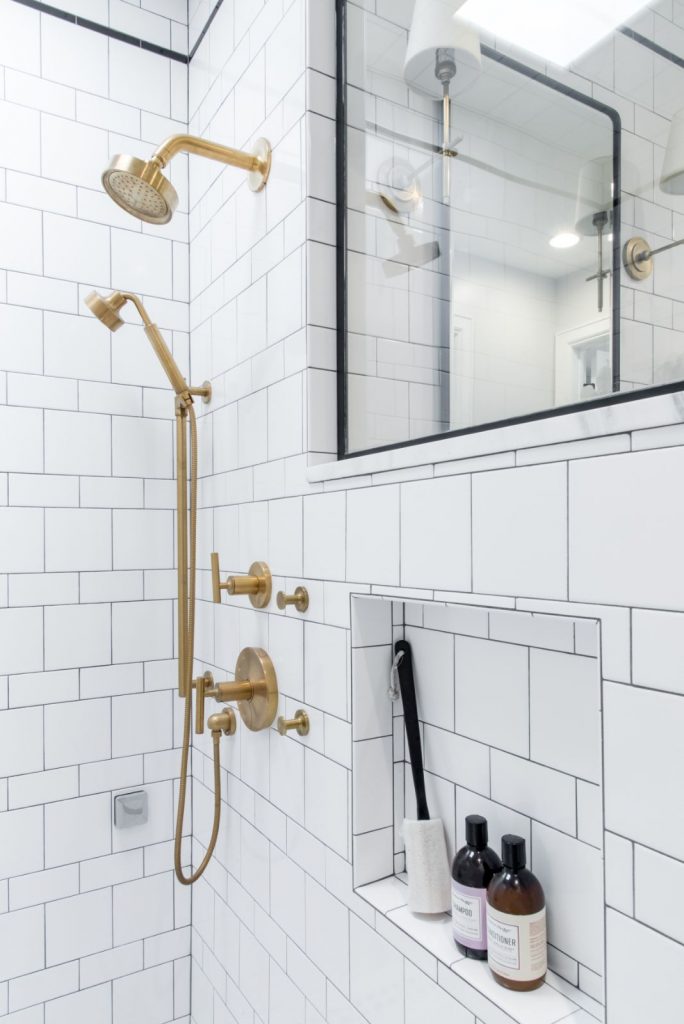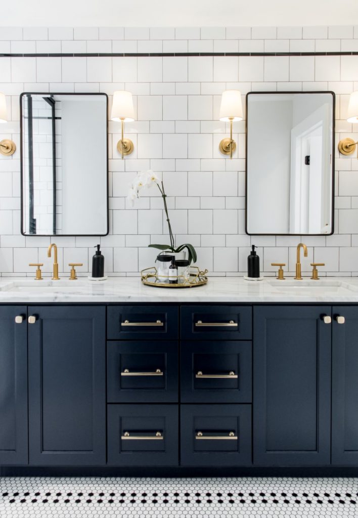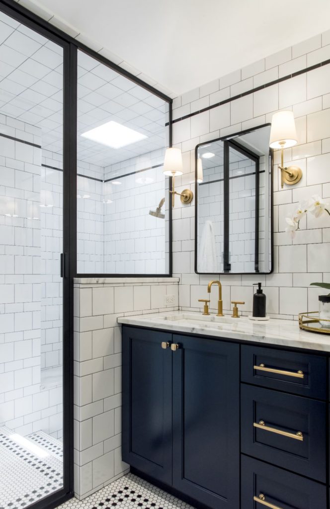 • Wainscot tile walls with hexagon mosaic tile floors.