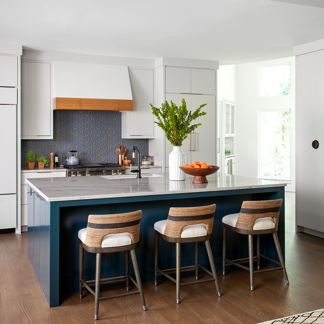 • Custom slab and shaker cabinetry