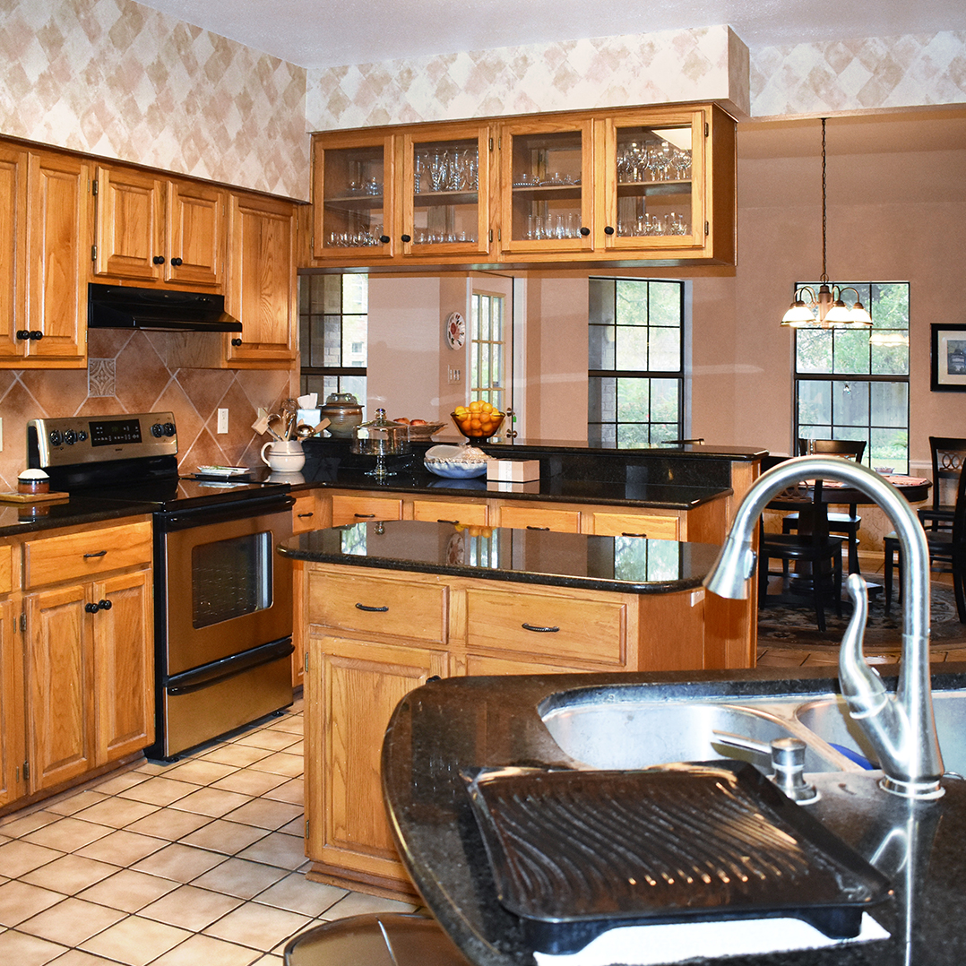 • Removed kitchen wall to open space between kitchen and living room