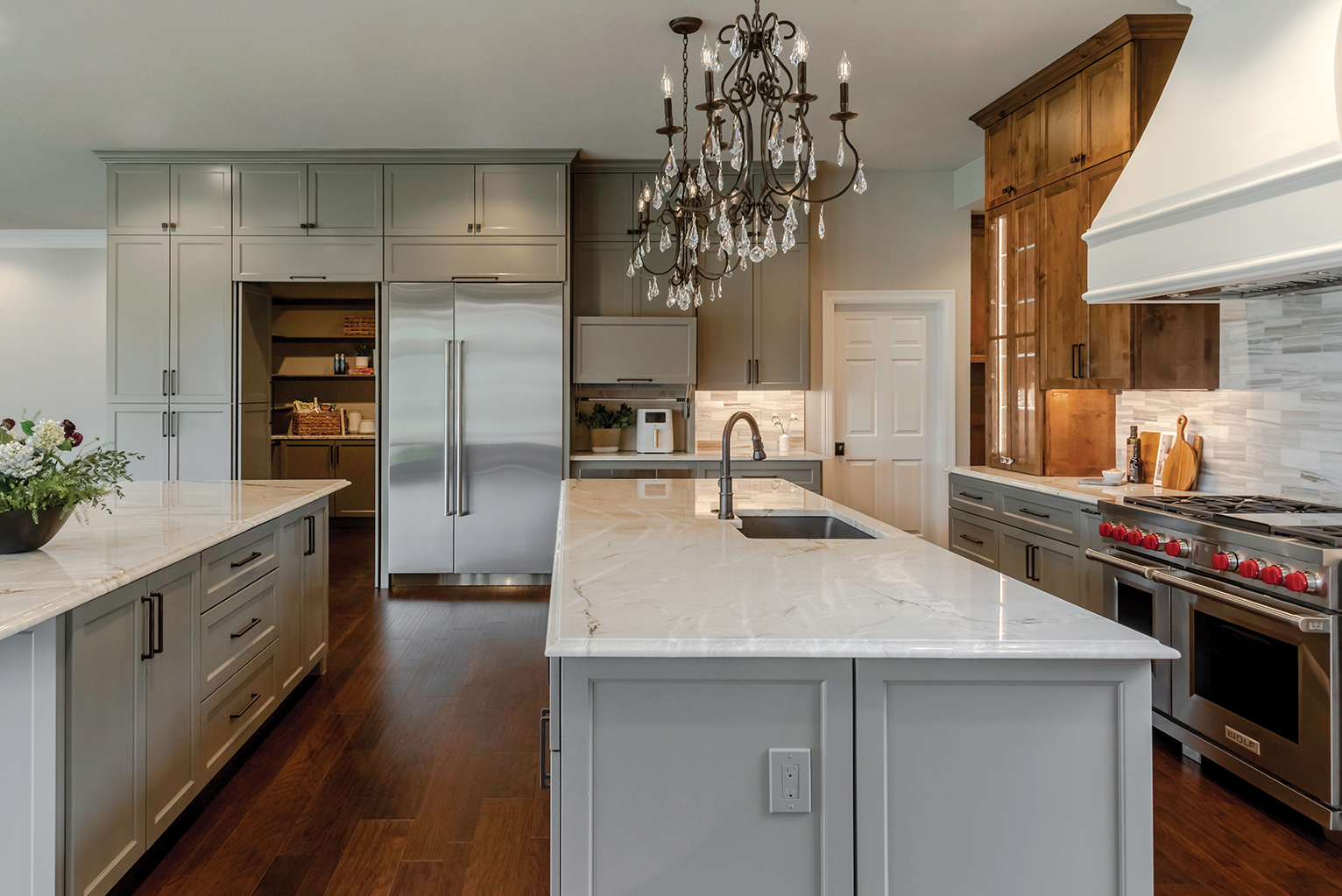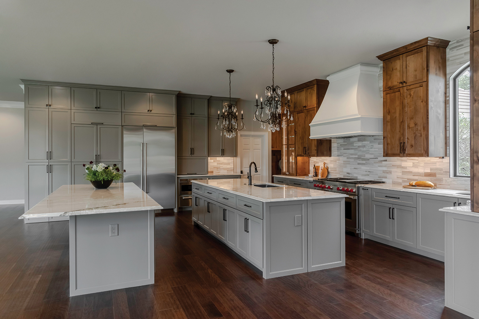 • Designed two sizable islands to enhance our clients' ability to entertain in this expanded area.